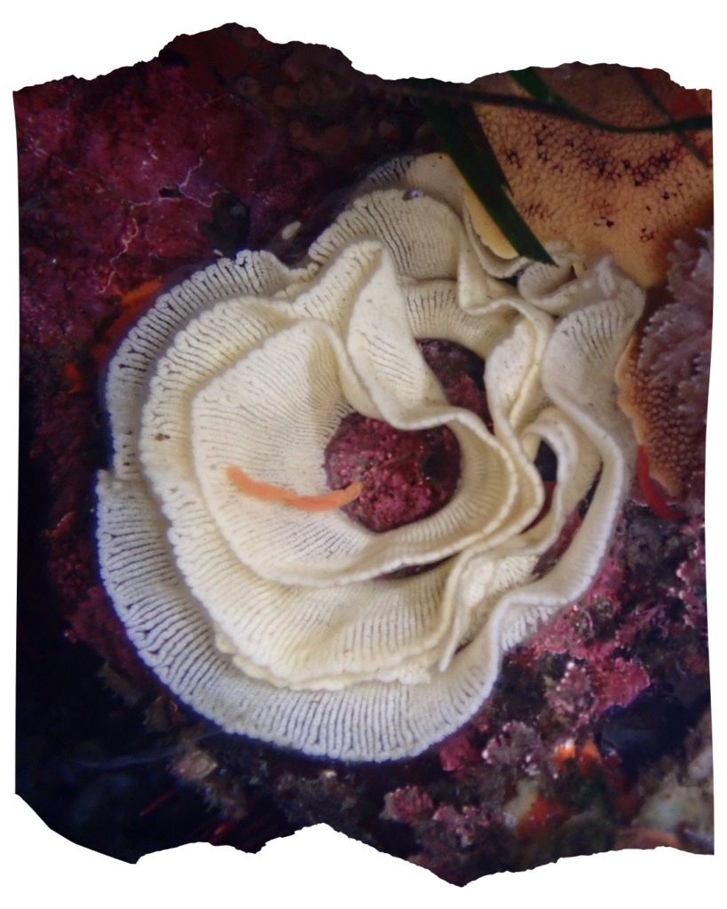 Sea lemons are winter spawners, releasing delicate, intricately-designed egg masses which resemble rolls of light-yellow crocheted ribbon from November to March. These woven wonders are made up of as many as two million eggs, and fewer than 1% of the larvae survive into adulthood. Sea lemons, as well as other nudibranchs, are considered r-selected species—those who produce many offspring, mature quickly, and have short lifespans, as opposed to k-selected species, who have few offspring, mature slowly, and have longer lifespans. They’re also hermaphroditic, and are able to mate with any other sea lemon, also an adaptation to increase their chances of successfully reproducing in their short one-year lifespans.